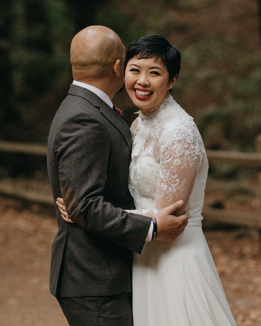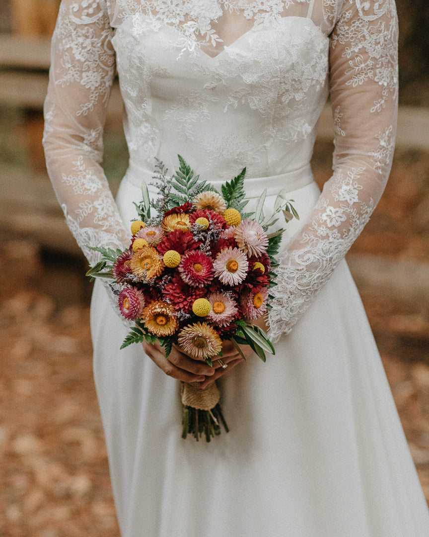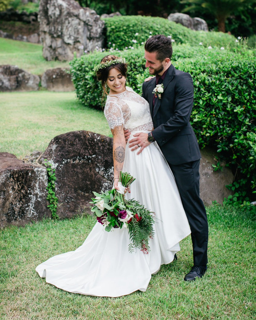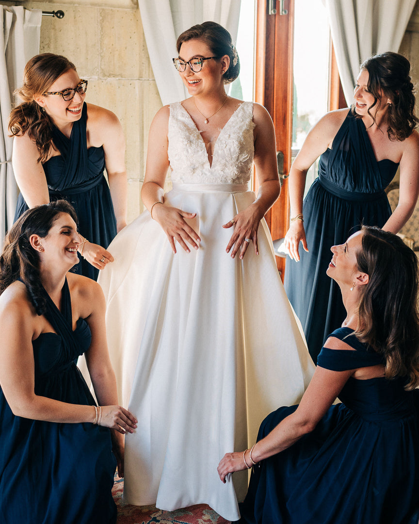 Craving a mix of romantic and classic? Having lace only on the bodice of your gown could be perfect! Our bride Kelly did just that! Kelly’s design features delicate sheet lace on the bodice of her dress with those perfect long sleeves. Paired with a classic A-line tulle skirt, this is the perfect combination to make the lace of your gown stand out and create some contrast between your bodice and skirt!