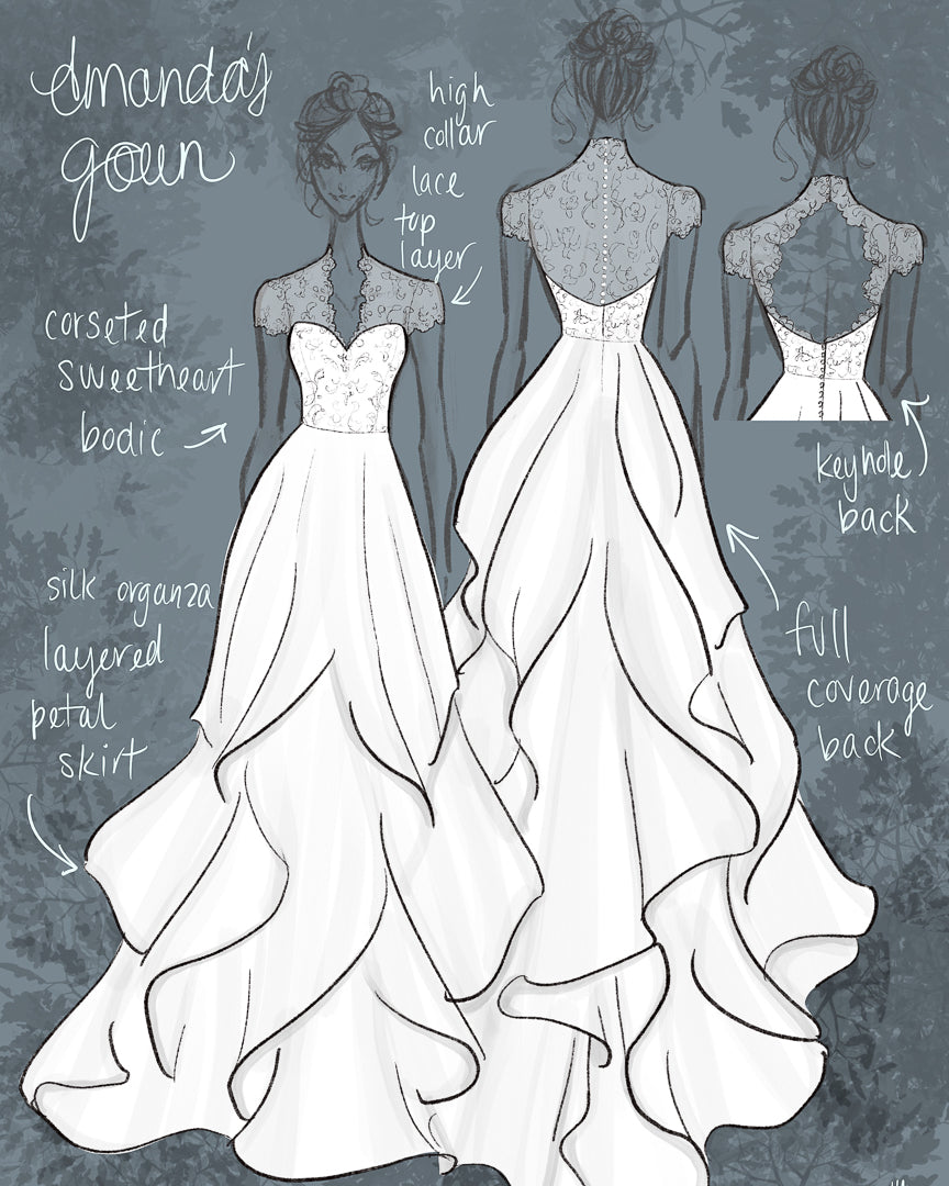 Once you have plenty of inspiration for your lace dress, the next step is scheduling an initial consultation with one of our expert designers. During your consultation, you’ll learn more about the design process and how we can bring your custom gown to life!