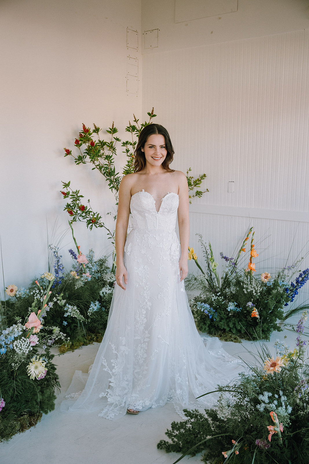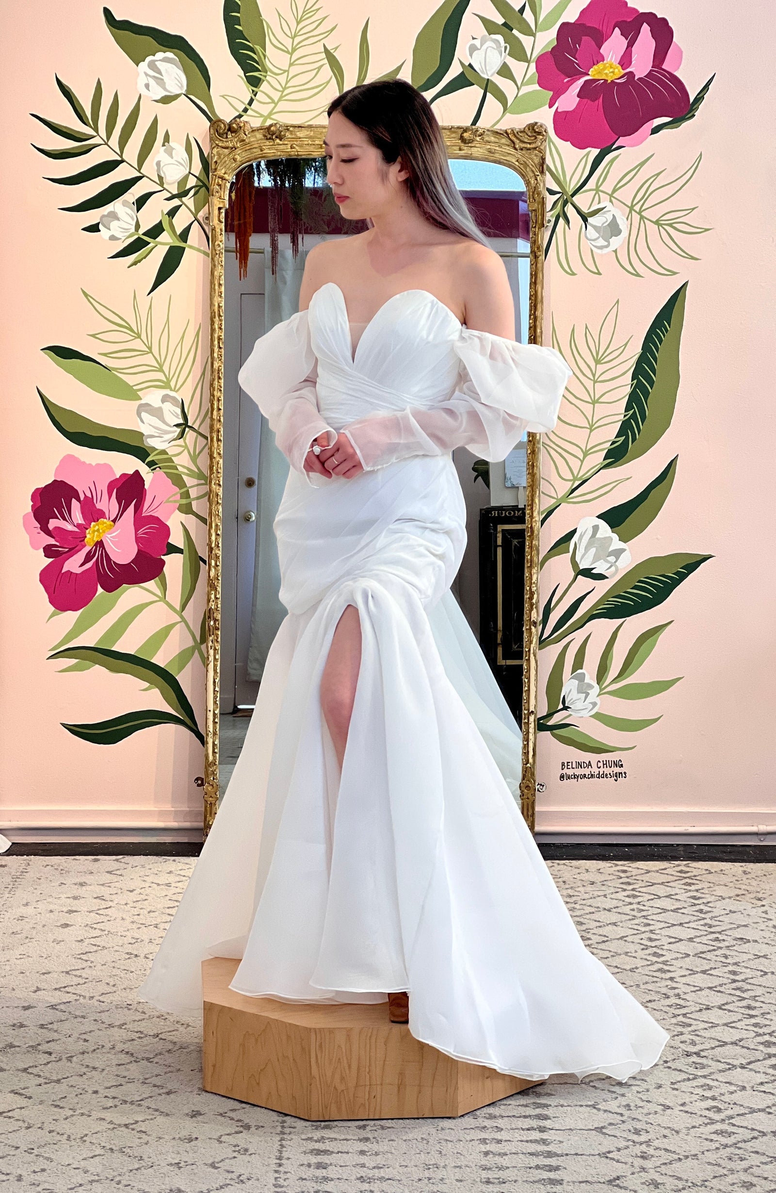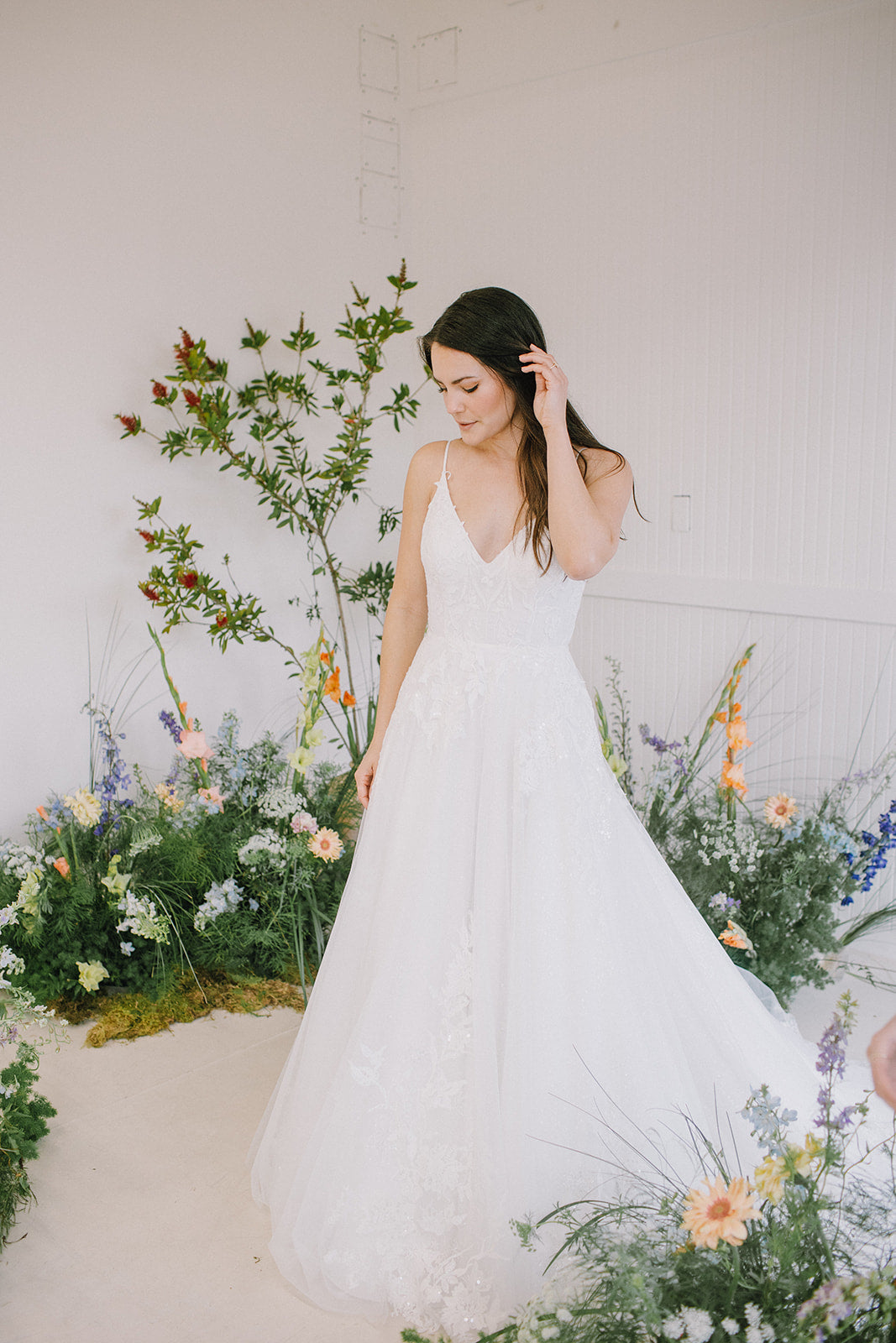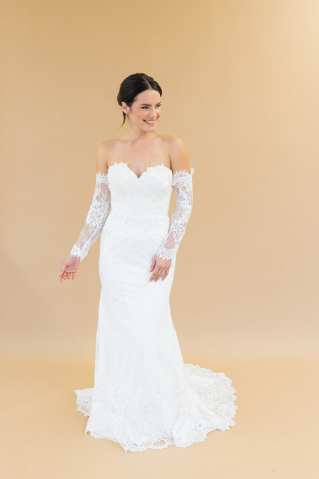 Our mission is to allow every bride to shine as the best version of themselves on their big day! In addition to our core collection, we also have the unique ability to work with brides on customizing any of our designs, as well as creating a completely custom gown.